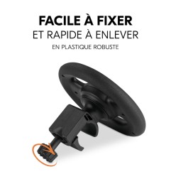 Pushchair Steering Wheel : un volant pour votre poussette Pour vivre une vraie sensation de conduite en promenadeVroum, vroum ! Tut, tut ! Vous aimez vous promener avec votre petit fan de voitures ? La Pushchair Steering Wheel transforme votre poussette en voiture. Avec le volant pour poussette, votre enfant fait l'expérience de la conduite comme dans une vraie voiture. Un vrai klaxon pour un plaisir bien réel !Le volant pour poussette est facile à tourner : il est parfait pour les petites mains. Le point fort : un bouton-poussoir klaxon, pour plus de plaisir. Votre enfant va sûrement l'adorer ! Facile à fixerVous ne souhaitez pas garder le volant sur la poussette en permanence ? Ce volant en plastique robuste se fixe rapidement et en toute simplicité. Vous pouvez l'enlev