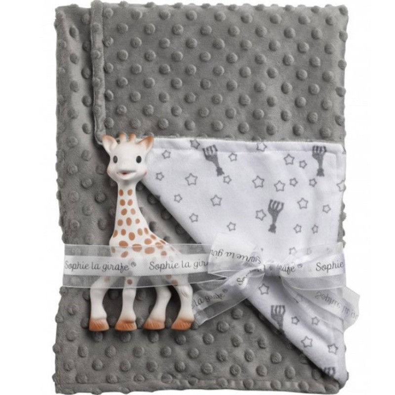 Rupture de stockPour entourer bébé de douceur !Cette jolie couverture en bi-matiere est extrêmement douce et bébé sera au chaud dans ce cocon de douceur.Elle est idéale pour protéger bébé du froid lors de ses premières sorties en voiture ou en poussette et pour protéger maman des regards indiscrets lors de l'allaitement.Pratique, elle se lave en machine à 30°CComprend : * Sophie la girafe, le premier jouet de bébé qui met tous ses sens en éveil, * Une couverture toute douce pour le confort de bébé. Dimension : 91x 73 cm