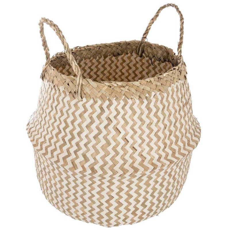 Panier tressé bicolore blanc et naturel, 75x45cm. Ravissant accessoire déco, utile et pratique, qui s'accommodera parfaitement dans la chambre d'enfant.