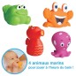 Rupture de stockAllez hop ! Tous à l’eau ! Les aspergeurs sont des petits jouets simples pour le bain aux jolies couleurs et aux personnages variés. Les possibilités de jeu sont multiples : ils flottent et permettent aussi des jeux rigolos grâce au petit trou qui fait gicler l’eau ! Leur design coloré, spécialement conçu pour les petites mains, est réalisé en plastique doux et résistant pour masser les gencives de bébé qui aime les mordiller. Moulés en une seule pièce, pour assurer la sécurité de Bébé !Pour jouer à l’arroseur arrosé… Bébé va pouvoir se livrer à des belles batailles d’eau en découvrant les 4 animaux marins. Ludiques, ces petits jouets permettent aux enfants de développer leur habileté et leur imagination. En grandissant, ils commencent à reconnait