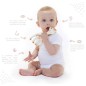 Le premier jouet de bébé qui met tous ses sens en éveil, dans son nouveau boîtage cadeau ! La vue : Grâce à ses taches foncées et contrastées sur tout le corps, elle attire le regard de bébé et devient un objet familier et rassurant pour bébé qui la reconnaît aisément. L’ouïe : Dotée d’un sifflet, elle amuse et stimule l’ouïe de bébé et l’aide à comprendre la relation de cause à effet. Le goût : Souple et dotée de nombreuses parties à mordiller (oreilles, cornes, pattes), elle est idéale pour soulager les gencives de bébé lors des poussées dentaires. Composée de caoutchouc 100% naturel et de peinture alimentaire, elle est sans danger pour bébé. Le toucher : Légère, elle est parfaitement adaptée aux petites mains de bébé et ses longues pattes et s