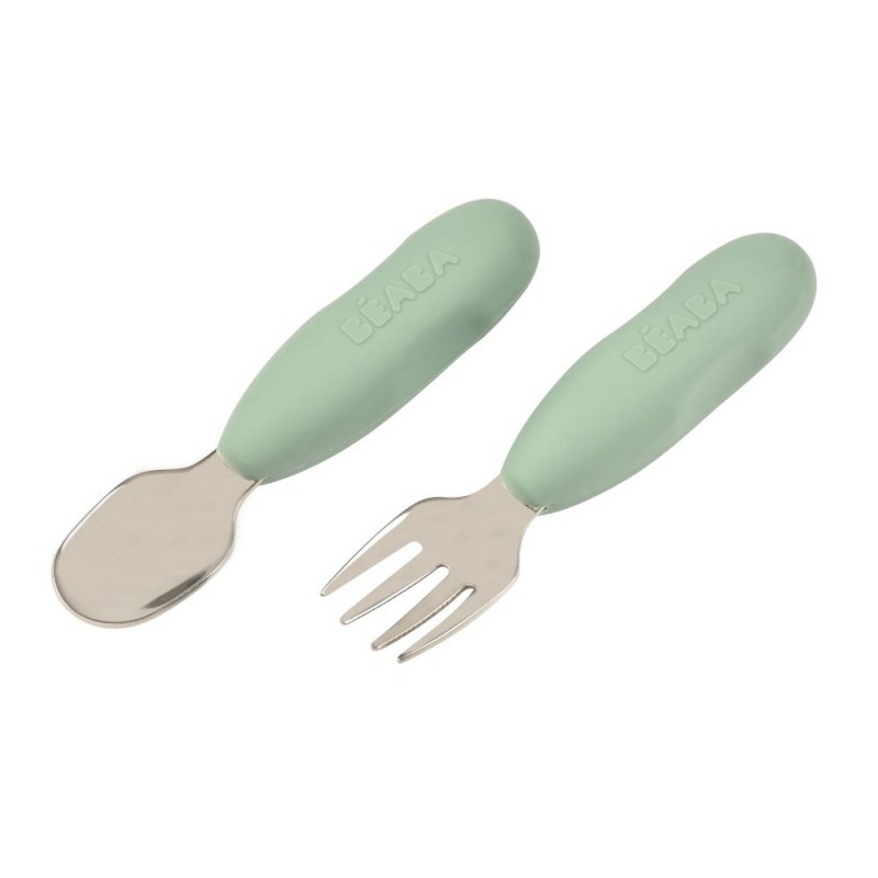 LOT DE 2 PRÉ-COUVERTS D’APPRENTISSAGE INOX Formes et dimensions ergonomiques. Développées avec une spécialiste de l’alimentation infantile : aide l’enfant à développer son autonomie.